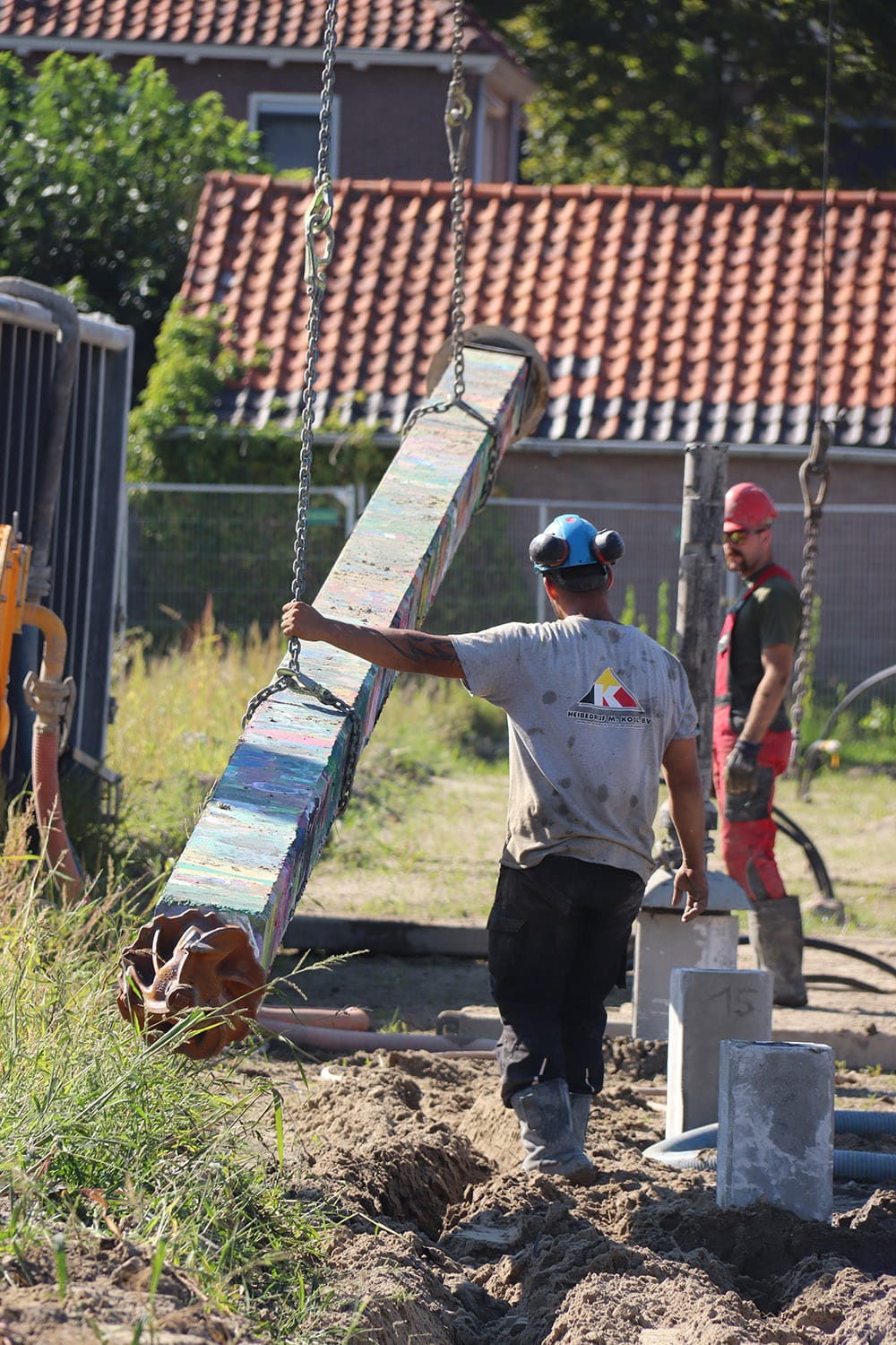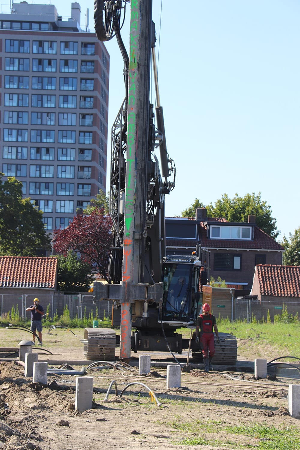 Dura Vermeer is de aannemer die de woningen bouwt. De hele bouw neemt ongeveer een jaar in beslag. De echte eerste heipaal ging meteen na de bouwvak de grond in. Deze heipalen worden geboord. De overlast voor de buurt is daardoor minimaal. Zowel qua geluid als trillingen. De heipaal die donderdag 7 september de grond in ging, was extra bijzonder. Alle kinderen van de naastgelegen Anne Frankschool hebben deze heipaal eerst geschilderd. Een feestelijk gezicht op deze warme middag die werd geopend door Marije Buursink, directeur-bestuurder van Poort6, wethouder Eva Dansen en directeur Rob Steijn van Dura Vermeer Bouw Zuid.