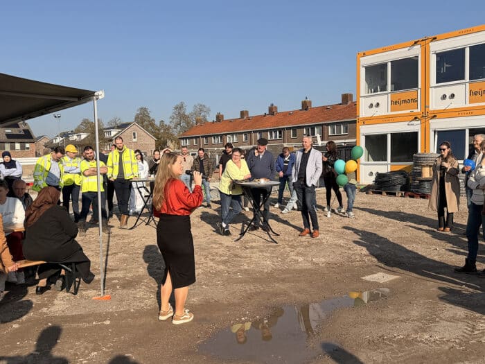 Directeur-bestuurder Marije Buursink van Poort6 sprak alle aanwezigen toe over het belang van dit nieuwbouwproject. “Met de bouw van deze woningen dragen we bij aan de ontwikkeling van Haarwijk-Oost. Er komen straks veel gezinnen te wonen en ook andere woningzoekenden profiteren. Een deel van de nieuwe bewoners huurt nu al bij Poort6. Als zij verhuizen, komen hun huidige woningen weer vrij voor anderen. Zo ontstaat er een verhuistreintje waardoor we nog meer mensen kunnen helpen aan een nieuw thuis.”
