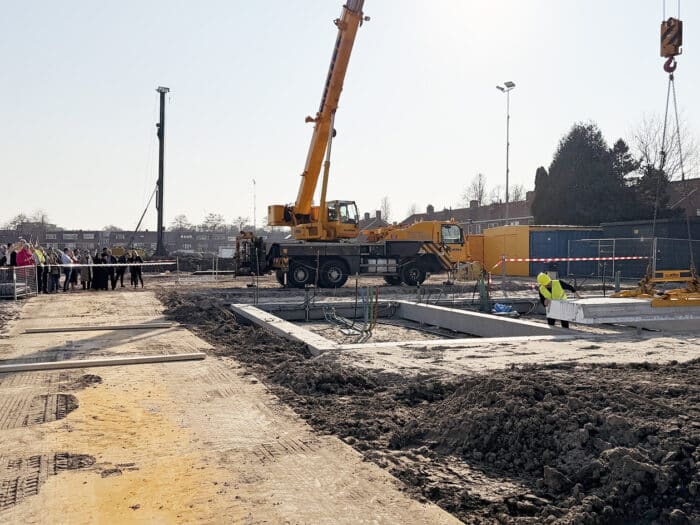 Met het leggen van de eerste vloerplaat ging dinsdag 3 maart de bouw van 130 sociale huurwoningen van Poort6 en 24 koopwoningen van Heijmans symbolisch van start. Op de zonnige bouwplaats kwamen toekomstige bewoners, omwonenden, de gemeente, bouwpartners en Poort6 samen om dit bijzondere moment te vieren.